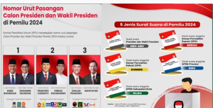 Berikut adalah lima warna surat suara di Pemilu 2024