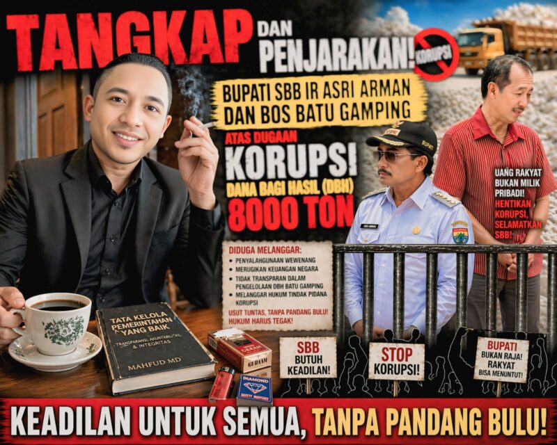 Infomalukunews.com, Ambon, 23 April 2026 — Bupati Seram Bagian Barat (SBB), Ir. Asri Arman, dijadwalkan akan didemo di Kantor Kejaksaan Tinggi (Kejati) Maluku oleh Lembaga Kajian Independen Maluku (LKI-M) Aksi Demo ini terkait dugaan ketidakjelasan Dana Bagi Hasil (DBH) dari pengiriman 8.000 ton batu gamping yang dinilai belum memberikan kontribusi nyata terhadap Pendapatan Asli Daerah (PAD).