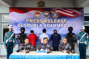 Kegiatan konferensi pers tersebut dipimpin langsung oleh Komandan Guspurla Koarmada III, Laksamana Pertama TNI Andri Kristianto, M.Han., didampingi Asops Danguspurla Kolonel Laut (P) Dr. Hariono, S.H., M.Tr.Hanla., M.A.P., serta Komandan KRI Panah-626 Letkol Laut (P) Yudha Himawan, M.Tr.Opsla.