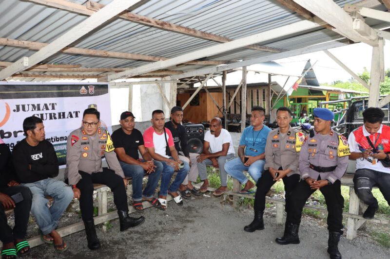 IM-Piru,SBB,- Kapolres Seram Barat (SBB) AKBP DENNIE A. DHARMAWAN, S.I.K mengadakan kegiatan Jumat Curhat dalam rangka Cooling System di Pangkalan Ojek 26, tepatnya di Tugu Pemekaran Desa Eti Kecamatan Seram Barat, Kabupaten SBB. Kegiatan tersebut bertujuan untuk memperkuat hubungan antara aparat kepolisian dan masyarakat, serta menyampaikan pesan-pesan penting terkait situasi keamanan dan ketertiban masyarakat.(08/12/2023).