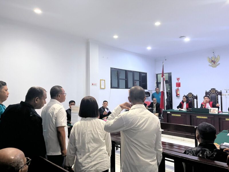 Sidang dipimpin oleh Ketua Majelis Hakim Nova Loura Sasube, didampingi hakim anggota Martha Maitimu dan Agus Hairullah.