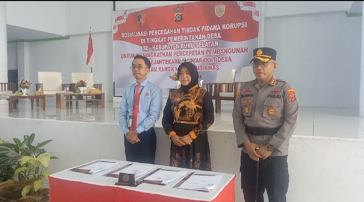 IM- Namrole;—Polres Buru Selatan menggelar sosialisasi Pencegahan Tindak Pidana Korupsi Tingkat Pemerintah Desa Se Kabupaten Bursel, berpusat di Gedung Serba Guna Namrole Bursel, Sabtu 29 Juli 2023.
